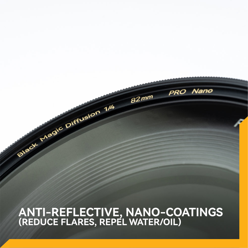 Every NiSi Black Magic Diffusion filter is crafted from premium cinema-grade optical glass, built to the same standards demanded by professional film productions worldwide. This ensures flawless optical performance, exceptional durability, and precision consistency across lenses and cameras. The high-quality glass resists scratches, maintains optical clarity under demanding conditions, and guarantees that diffusion effects remain uniform—even in high-resolution cinema workflows. Whether you’re shooting on set, outdoors, or in fast-moving environments, you can trust the Black Magic Diffusion to deliver uncompromised image quality that meets the expectations of directors, cinematographers, and colorists alike.
